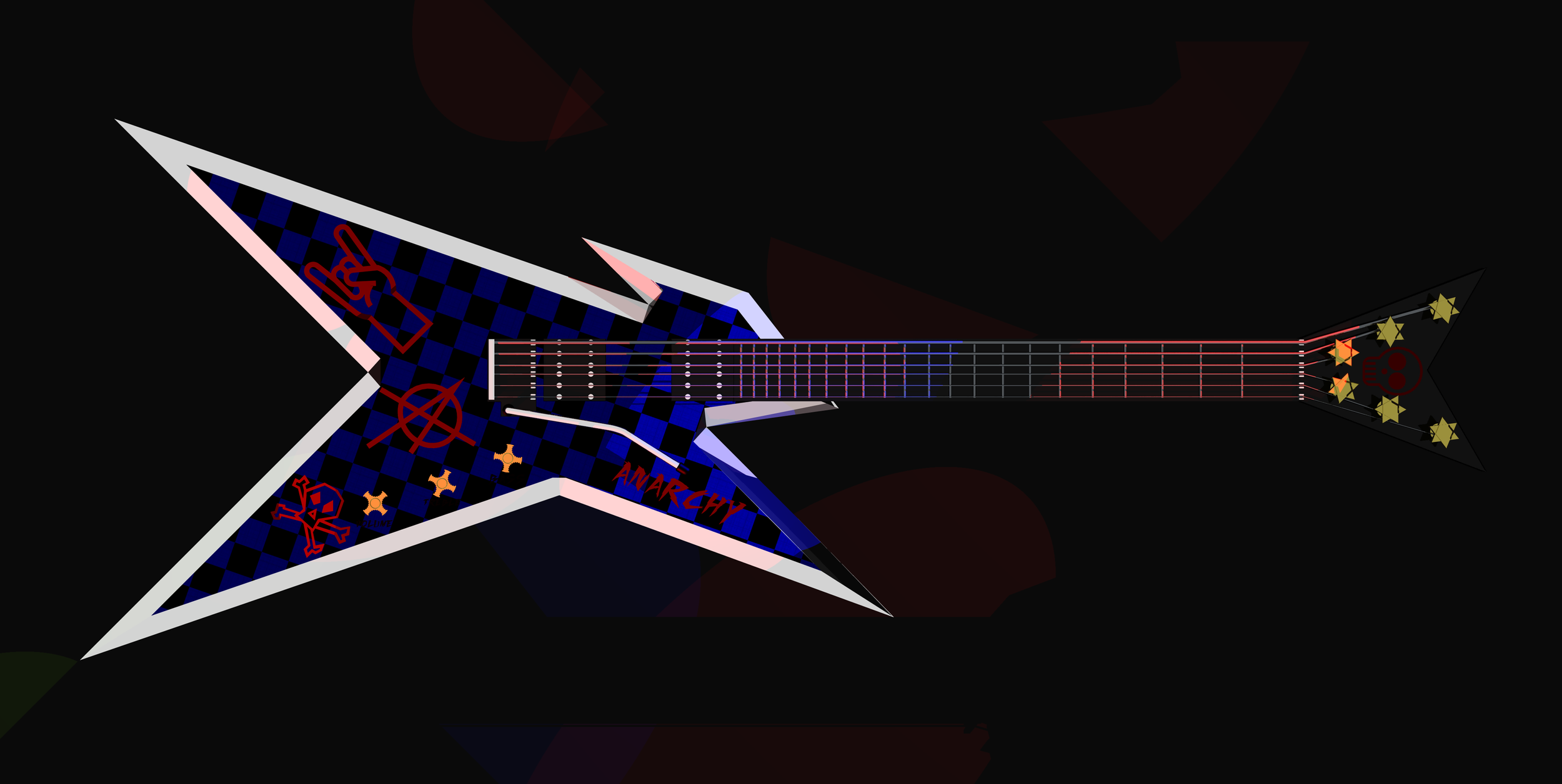 A 3d modeled electric guitar built and rendered in VectorWorks2008, styled to suit the Emo-Scene style.